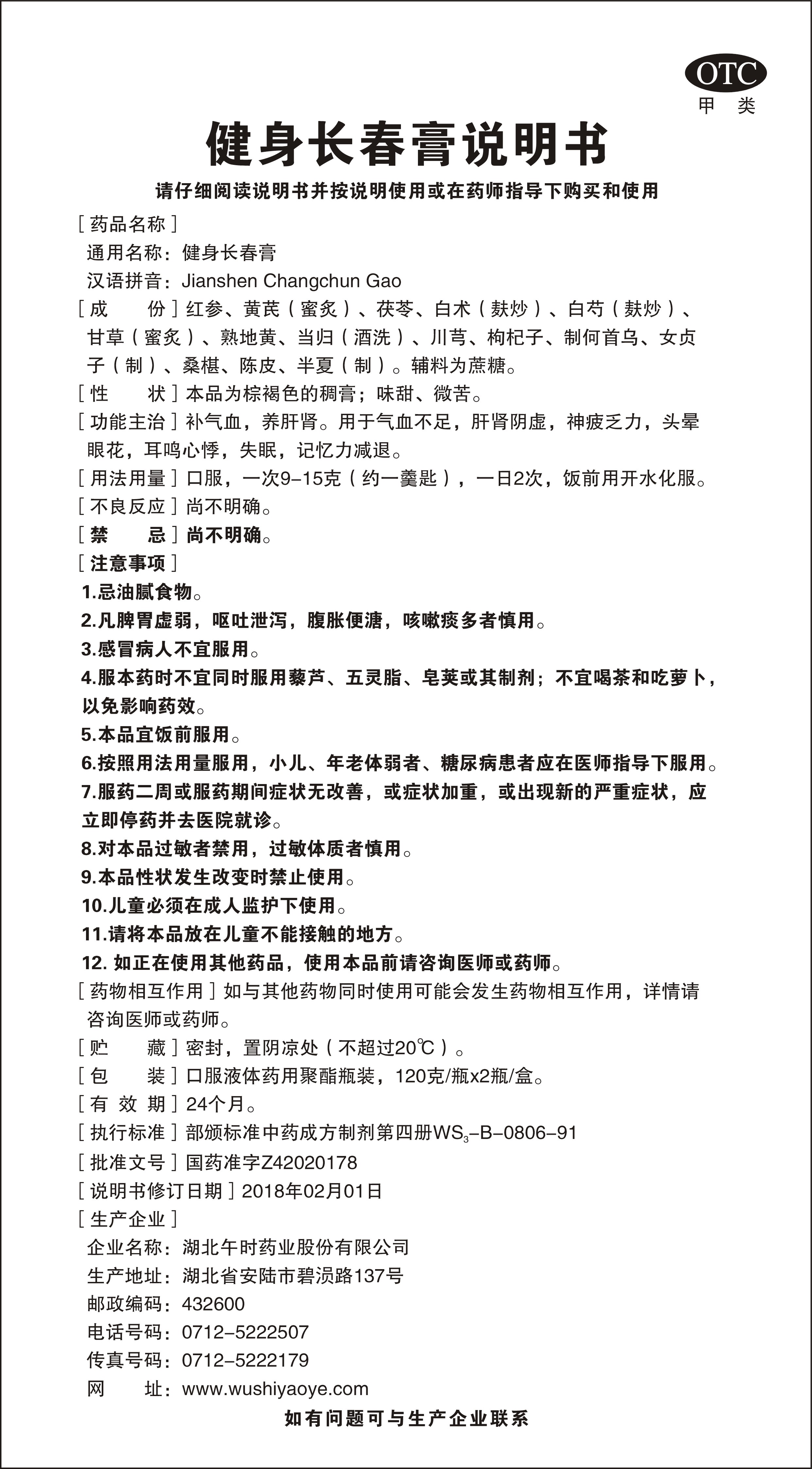 通用名稱:健身長春膏